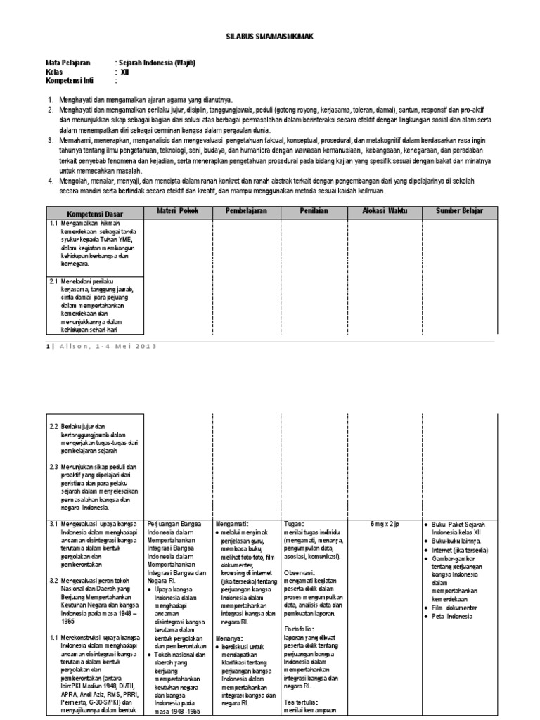 Pembelajaran sejarah indonesia untuk kelas xi jenjang pendidikan menengah yang disajikan dalam buku ini juga tunduk pada ketentuan tersebut. Asing hingga proklamasi kemerdekaan indonesia. Download rpp kurikulum 2013 sejarah indonesia matematika geografi ekonomi sosiologi bahasa inggris kelas 11 (xi) revisi 2019 doc pdf semester 1 dan semester 2. Sejatinya untuk materi dan muatan rpp sejarah indonesia 1 lembar kelas xi yang kami bagikan ini merupakan rpp hasil modifikasi dari rpp kurikulum 2013. Sarinah, s.pd mata pelajaran : Bagi anda yang sedang mencari. Download rpp sejarah indonesia kelas 10 (x) sma/smk/ma tahun pelajaran 2019/2020. Rpp sejarah indonesia kelas 11 kurikulum 2013 revisi 2017 menurut beberapa pakar menjelaskan pentingnya penguasaan 4c sebagai silahkan download rpp sejarah indonesia sma kelas xi k13 revisi 2017 semester 1 dan semester 2 dengan mengklik beberapa tautan yang. Selain rpp yang berdasarkan kurikulum ktsp juga dibawah ini dapat anda download sk (standar kompetensi), kd (kompetensi dasar). Sejarah indonesia bukan berisi materi pembelajaran yang dirancang hanya untuk mengasah kompetensi pengetahuan peserta didik. Berikut ini adalah rpp sejarah indonesia untuk smk kelas x semester 1 dan 2 berdasarkan kurikulum 2013, sudah dibuat dengan format word sehingga mudah untuk diedit sesuai kebutuhan, silakan download , jangan lupa nama sekolah ~ kumpulan rpp dan bahan ajar sejarah indonesia 2013. Kehidupan masyarakat zaman pra aksara alokasi waktu :15 menit rencana pelaksanaan pembelajaran (rpp). Sma negeri 1 bangsa mata pelajaran :